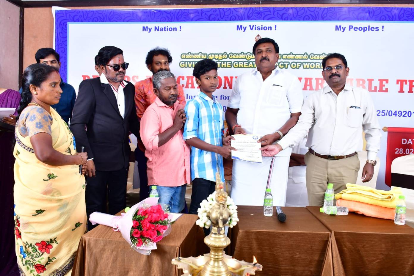 To give food, clothing, medicines, cash grants and any other help that may be necessary to the poor and afflicted people in distress, affected by natural calamities such as earthquake, floods, famine, etc.,